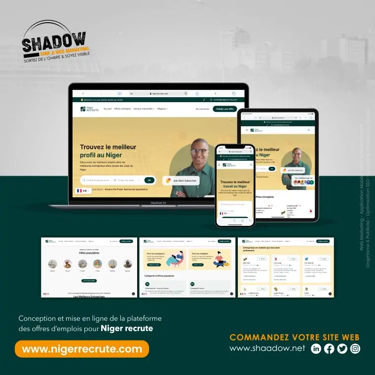 Vous souhaitez un site internet unique, qui ne ressemble à aucun autre ? Vous êtes au bon endroit car chaque site web que nous créons dans notre agence web à Niamey est développé avec minutie pour correspondre au mieux à la demande de notre client et à la charte graphique de l’entreprise.